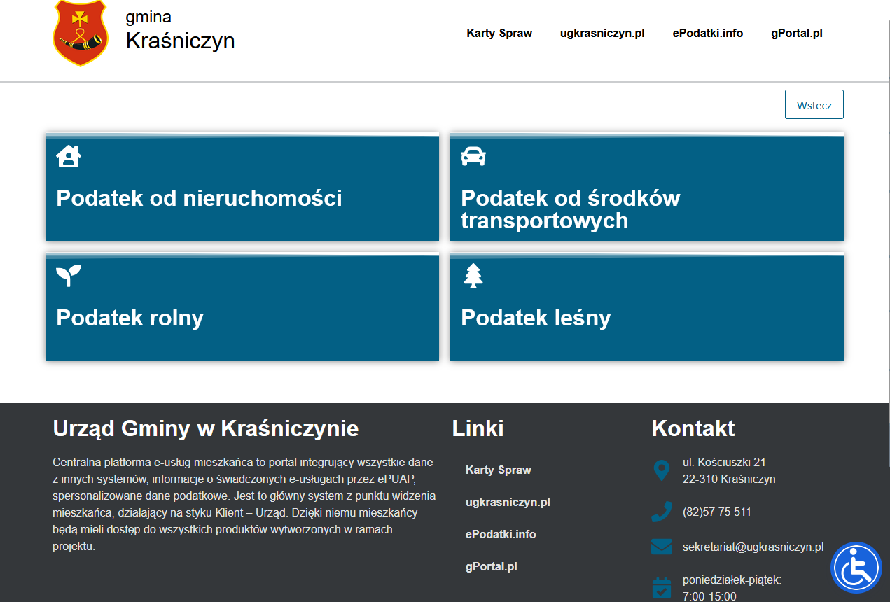 Serwis dostępny jest pod adresem: https://ugkrasniczyn.epodatnik.info.pl/