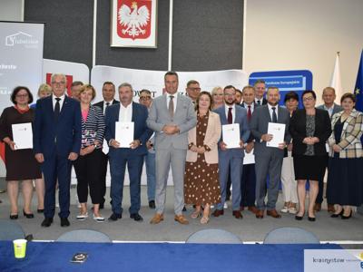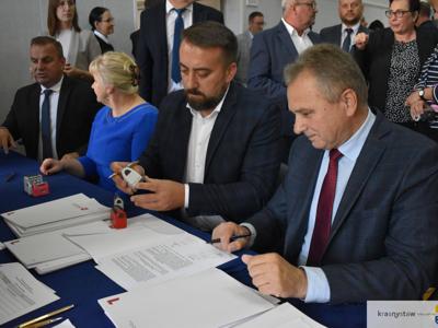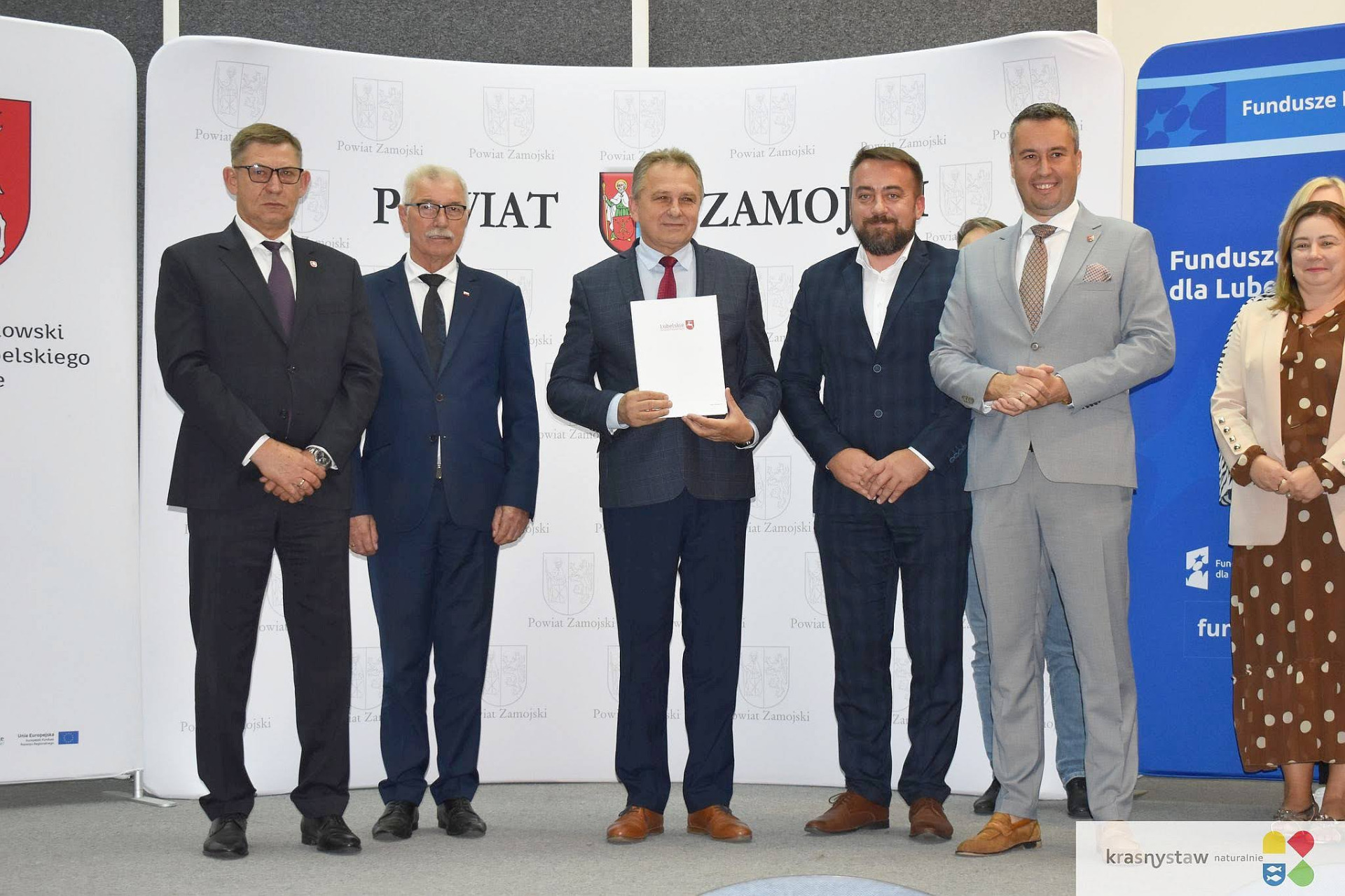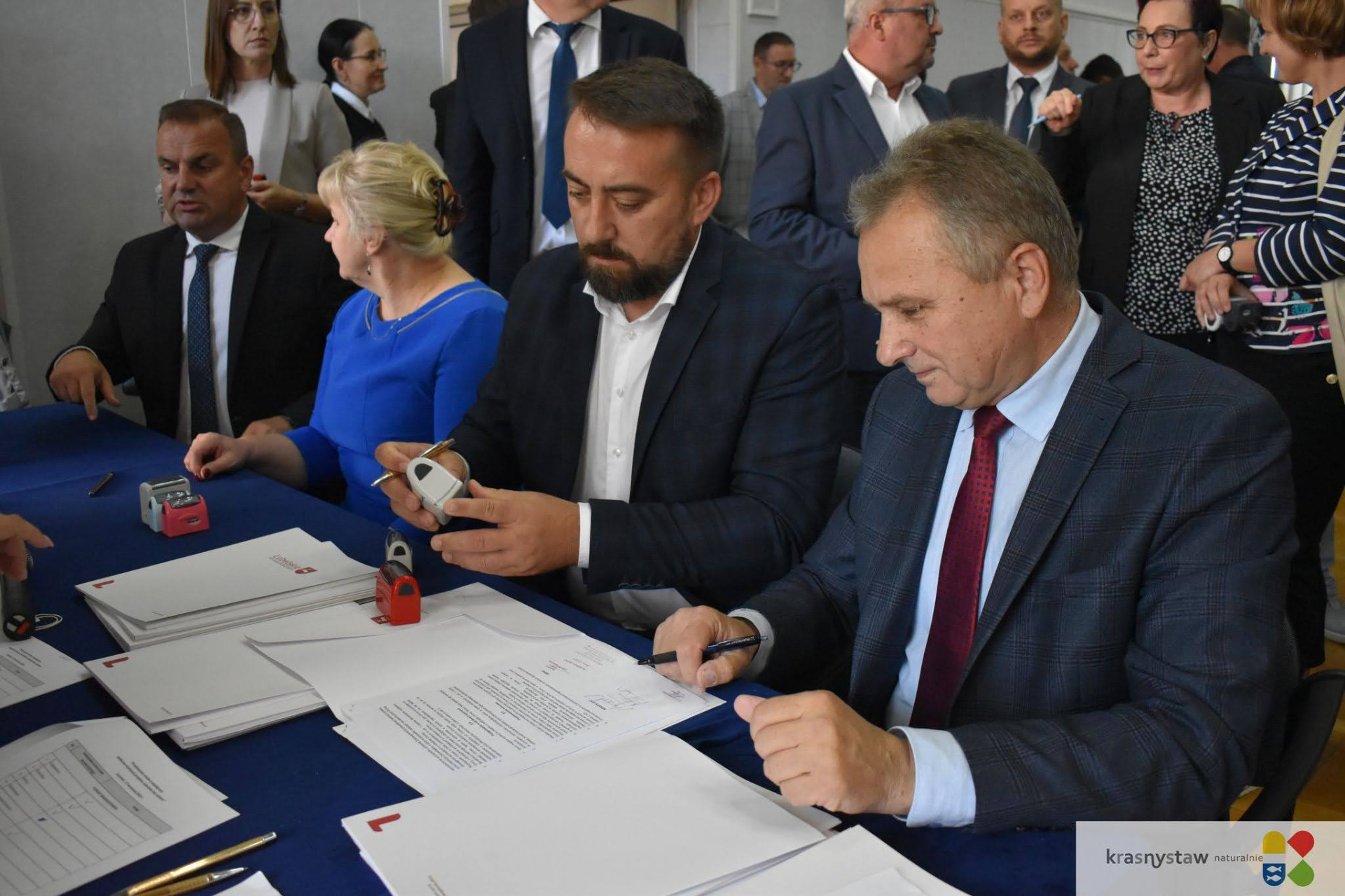 W dniu 17 września 2025 r. Wójt Gminy Kraśniczyn Jan Chorągiewicz oraz Skarbnik Gminy Andrzej Gierszon podpisali w Starostwie Powiatowym w Zamościu umowę dotyczącą realizacji zadania związanego z usuwaniem materiałów zawierających azbest z terenu Gminy Kraśniczyn.