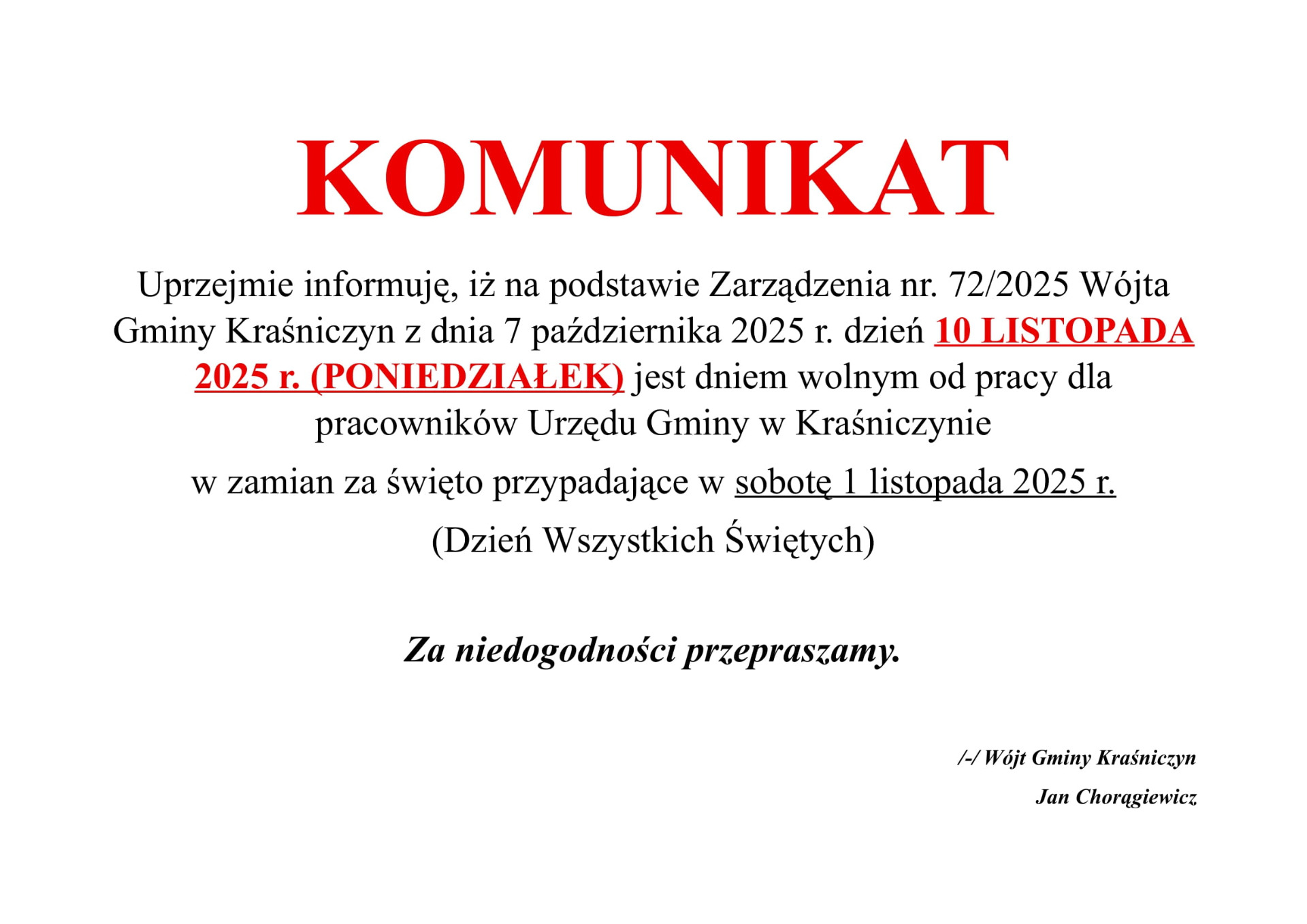 Starostwo Powiatowe w Krasnymstawie serdecznie zaprasza na obchody...