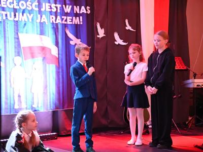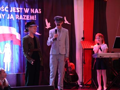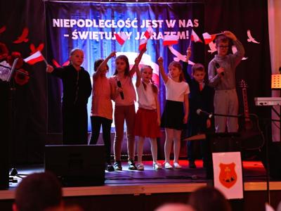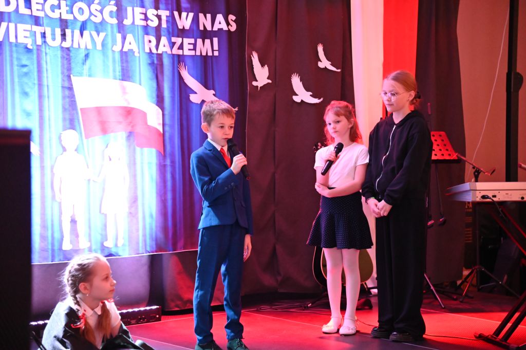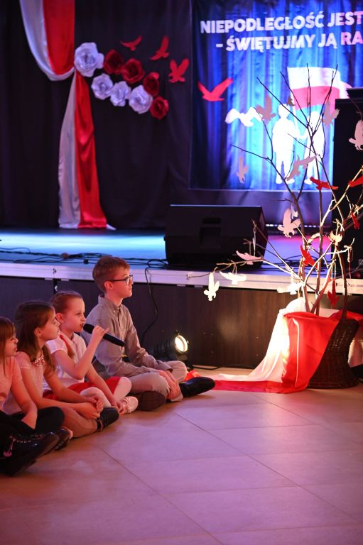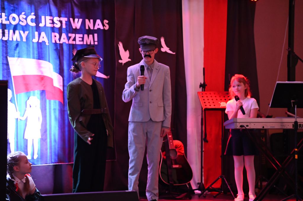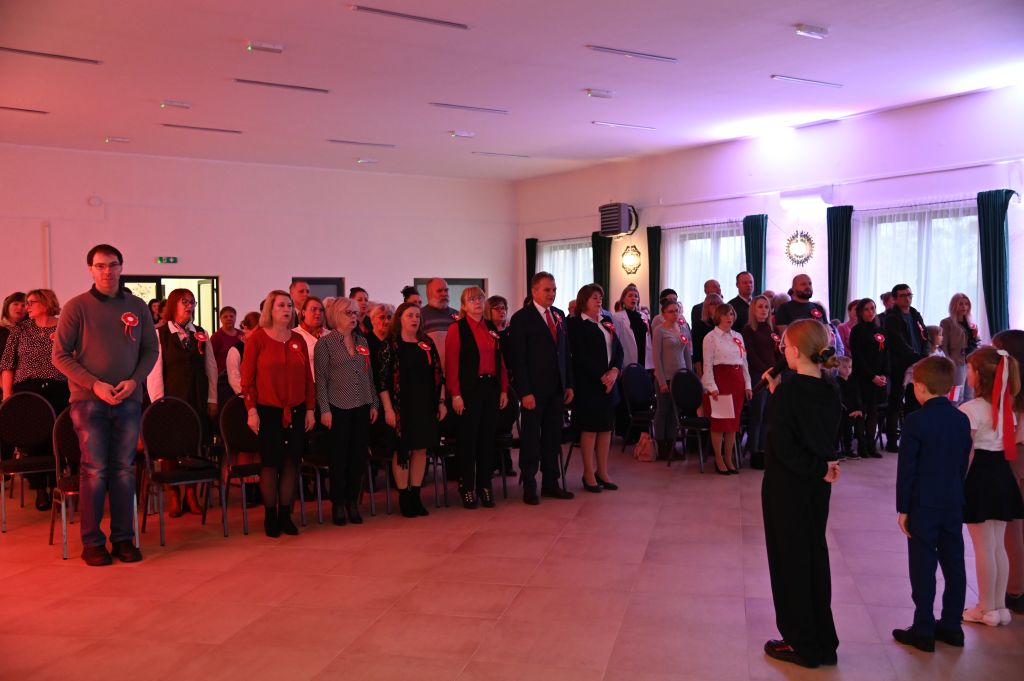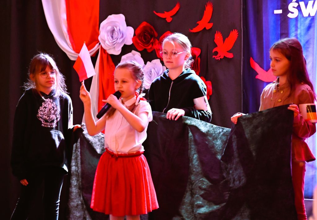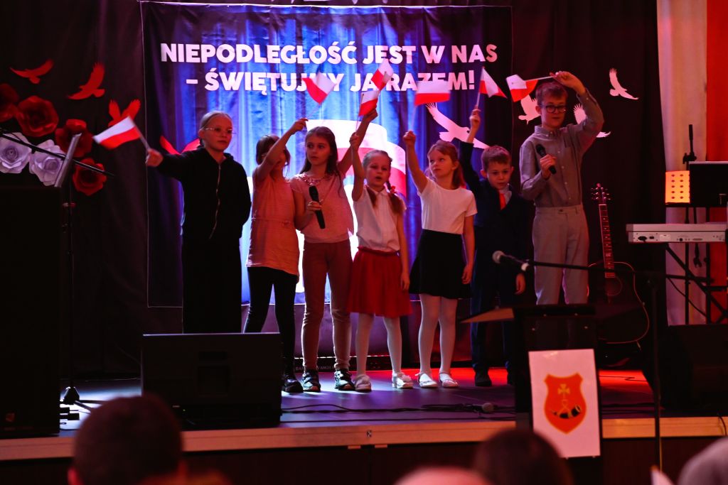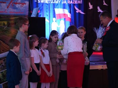 Po okoliczno艣ciowym przemówieniu Wójta rozpocz臋艂a si臋 cz臋艣膰 artystyczna. Jako pierwsi na scenie zaprezentowali si臋 najm艂odsi — dzieci臋ca grupa teatralna dzia艂aj膮ca przy Domu Kultury. Ich wzruszaj膮cy wyst臋p przypomnia艂, 偶e mi艂o艣膰 do Ojczyzny i szacunek dla jej historii warto piel臋gnowa膰 ju偶 od najm艂odszych lat.