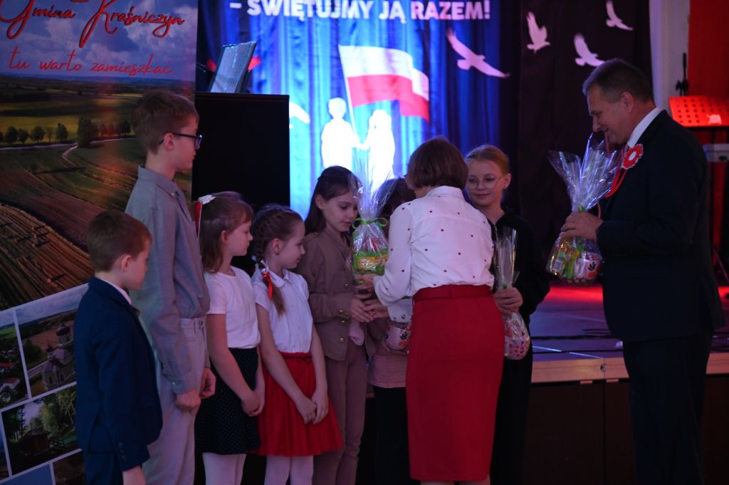 Dalsza cz臋艣膰 obchodów odby艂a si臋 w sali widowiskowej Domu Kultury w Kra艣niczynie. W uroczysto艣ci udzia艂 wzi臋li Wójt Gminy Jan Chor膮giewicz, Wicewójt Anna Mróz, Przewodnicz膮ca Rady Gminy wraz z Radnymi, So艂tysi przedstawiciele instytucji gminnych oraz licznie zgromadzeni mieszka艅cy. Wspólne 艣wi臋towanie przebiega艂o w atmosferze jedno艣ci, dumy i g艂臋bokiego patriotyzmu.