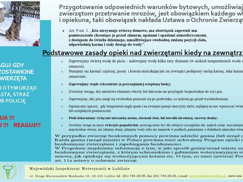 Niekorzystne warunki zimowe - dobrostan zwierząt domowych