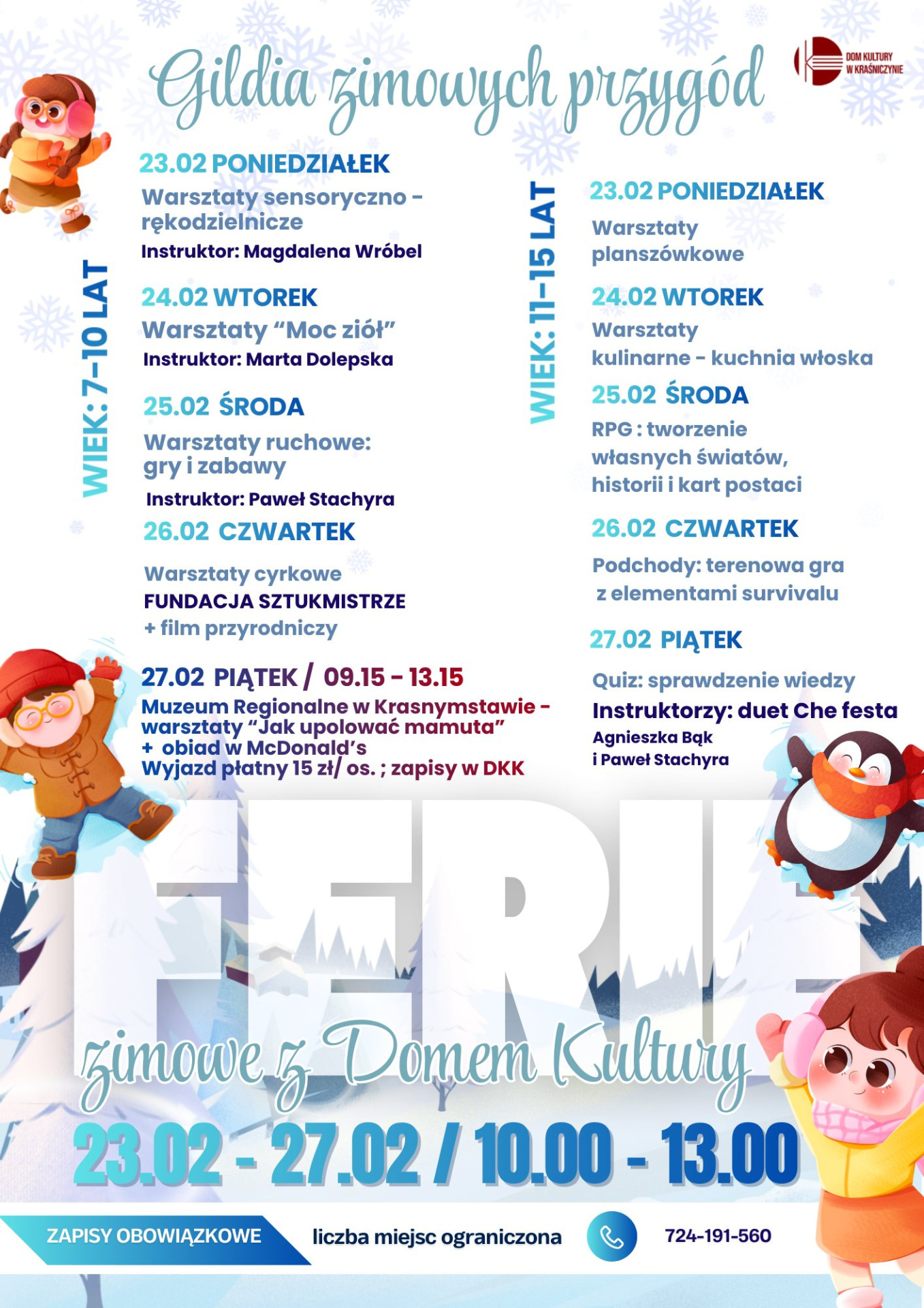 Serdecznie zapraszamy na ferie z Domem Kultury w Kraśniczynie