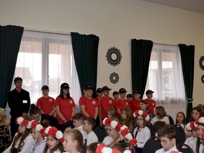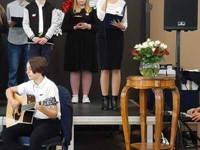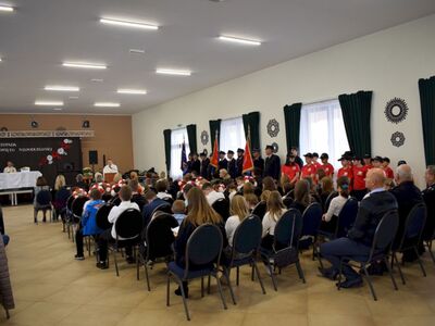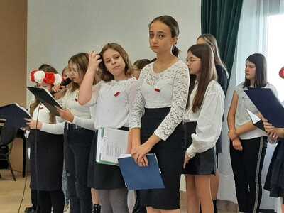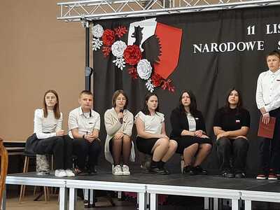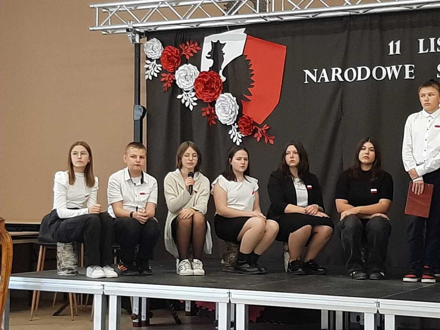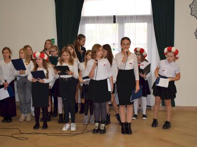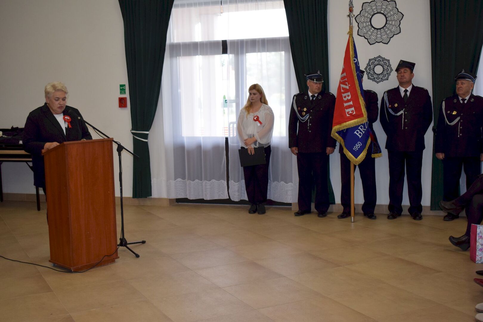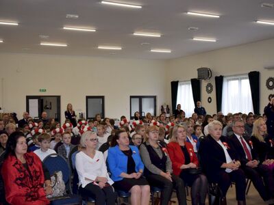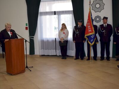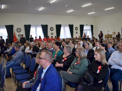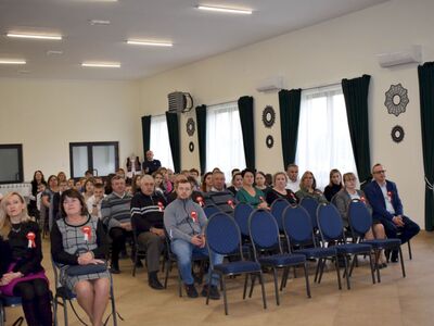 Z okazji tego święta Pani Wójt Monika Grzesiuk ufundowała i przekazała młodzieży 100 biało-czerwonych flag państwowych, aby młode pokolenie uczyć szacunku do Ojczyzny.
