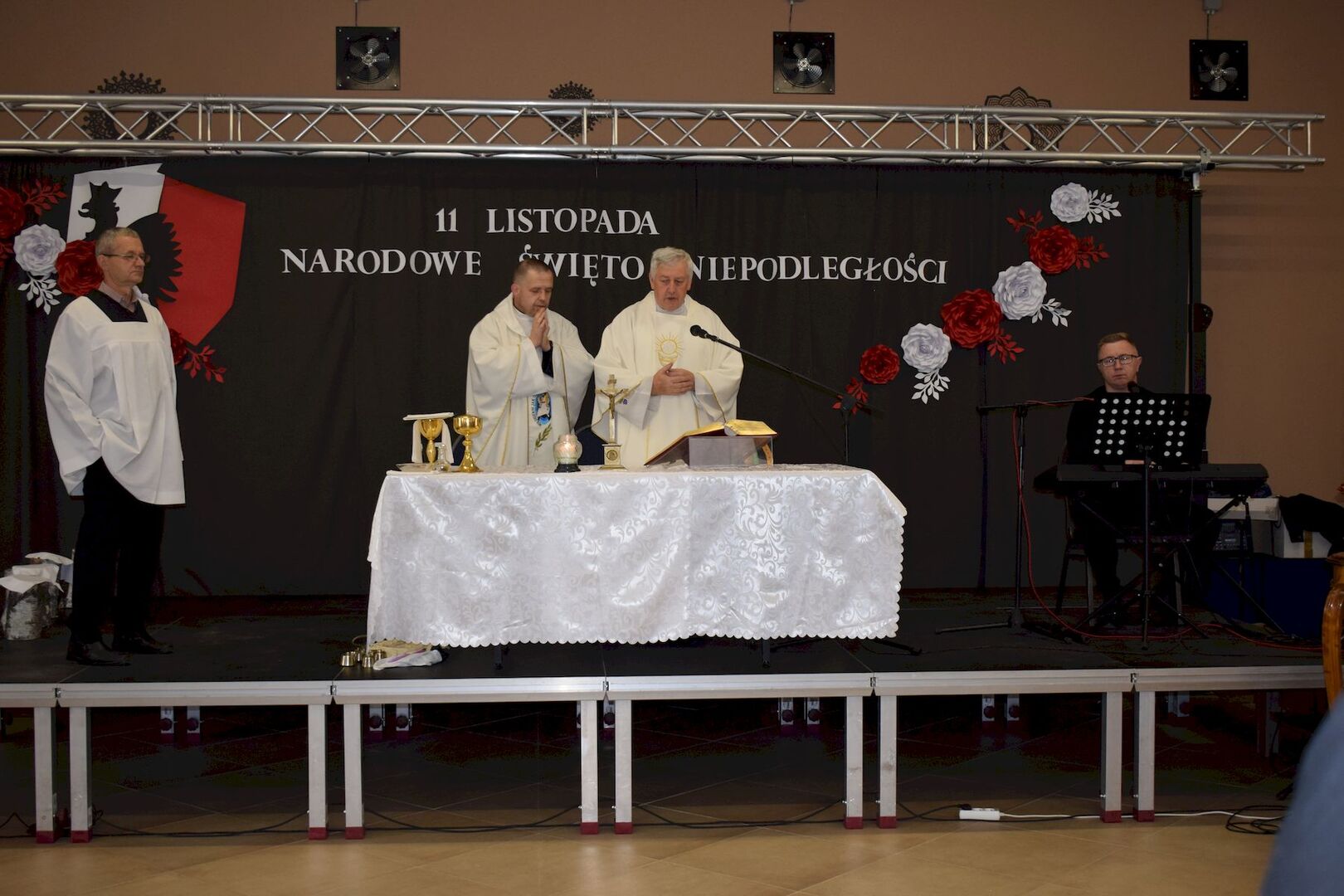 Tegoroczne gminne obchody Święta Niepodległości rozpoczęły się w piątek 10 listopada 2023r. wspólną Mszą Św. i akademią w wykonaniu Młodzieży ze Szkoły Podstawowej im. Kardynała Stefana Wyszyńskiego w Kraśniczynie, które celebrowaliśmy w Domu Kultury w Kraśniczynie.