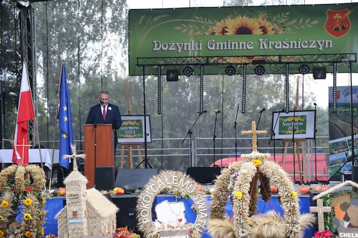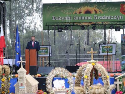 Kolejnym punktem wydarzenia było uroczyste otwarcie gminnego święta plonów przez Wójta Gminy Jana Chorągiewicza, który przywitał przybyłych gości, byli to m.in.: Józef Zając – Senator RP, Dariusz Grabczuk - Radny Województwa Lubelskiego, Janusz Szpak - Starosta Krasnostawski, Piotr Jelonek - Kierownik Biura Powiatowego Agencji Restrukturyzacji i Modernizacji Rolnictwa w Krasnymstawie, Marek Piwko - Przewodniczący Rady Powiatu Krasnostawskiego wraz z radnymi Rady Powiatu: Markiem Nieściorem, Piotrem Raczkowskim, który odczytał list od Pana Posła do Europarlamentu Krzysztofa Hetmana.