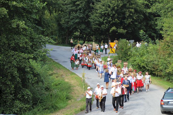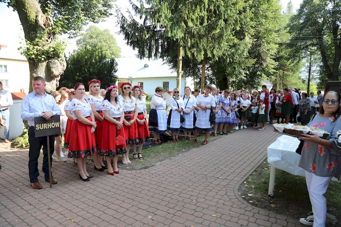 O godzinie 15:15 nastąpiło poświęcenie pięknie wykonanych przez lokalne KGW wieńców dożynkowych, które symbolizują bogactwo tegorocznych plonów. Chwilę później, o 15:30, ruszył barwny Korowód Dożynkowy, który przemaszerował na plac przy remizie OSP w Surhowie. Starostami tegorocznych dożynek, którzy przekazali chleb na ręce gospodarza, byli: Pani Monika Szpak i Pan Grzegorz Chmielewski.