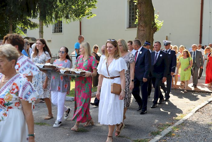 Oficjalne otwarcie Dożynek miało miejsce tuż po dotarciu korowodu na miejsce. Uroczystość rozpoczęto powitaniem gości oraz wystąpieniami okolicznościowymi.